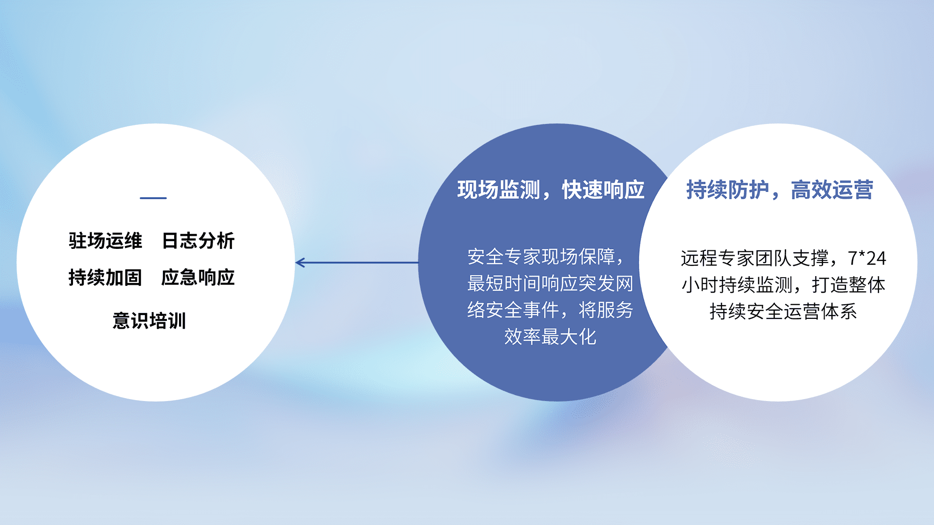 7X24小时持续监测安全事件,保持安全策略有效性,降低资产脆弱性风险,,精准拦截黑客攻击,,,,减少被黑客利用的机会,,,第一时间遏制,,降低损失。。。。